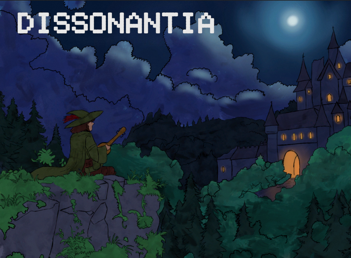 You are playing a Bard, trapped in a mega-dungeon corrupted by The Dissonance. The mega-dungeon consists of three mini-dungeons, each occupied by a corrupted artist: Saddened Painter, Miserable Writer, and a Pitiful Actor.